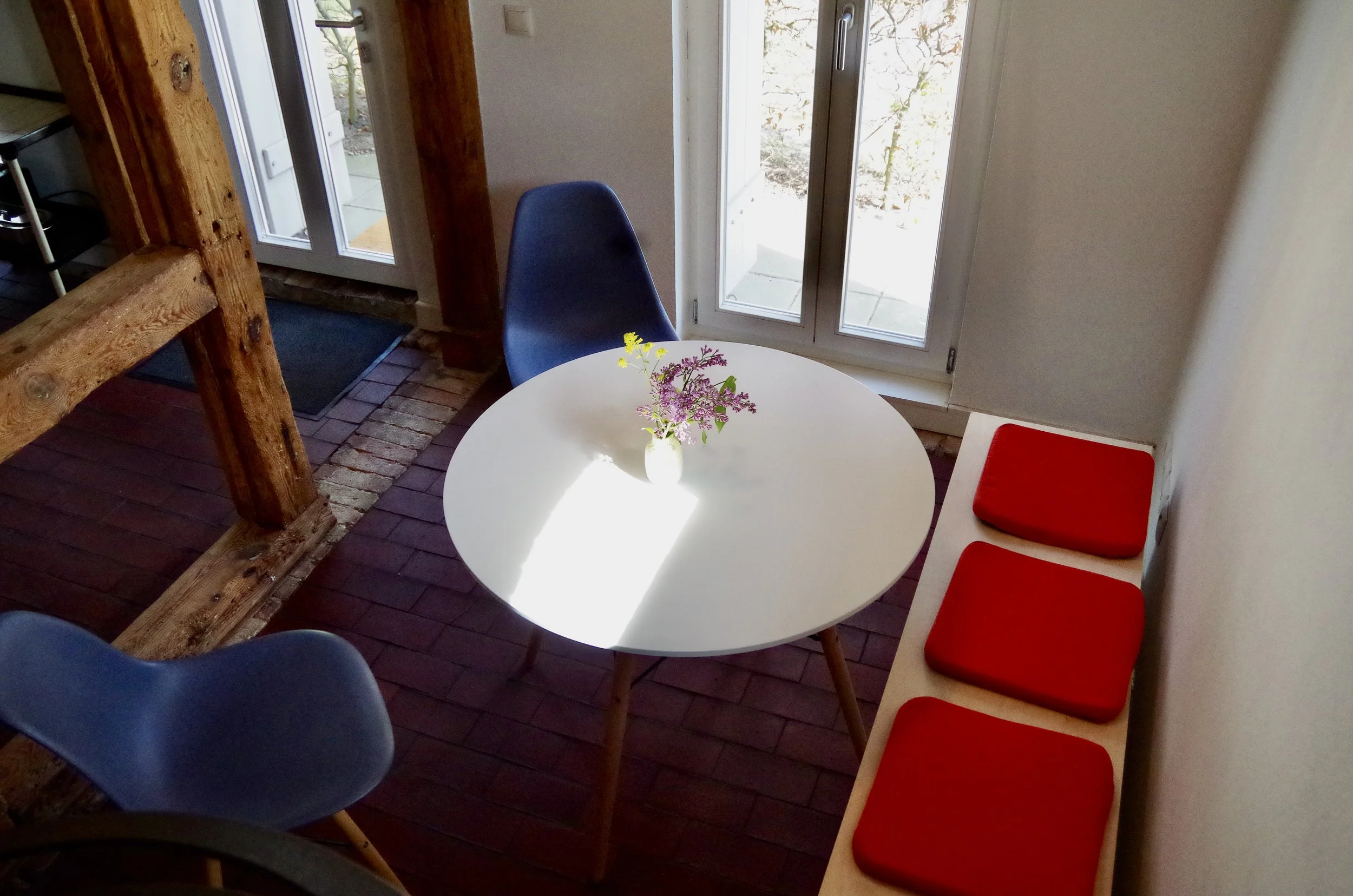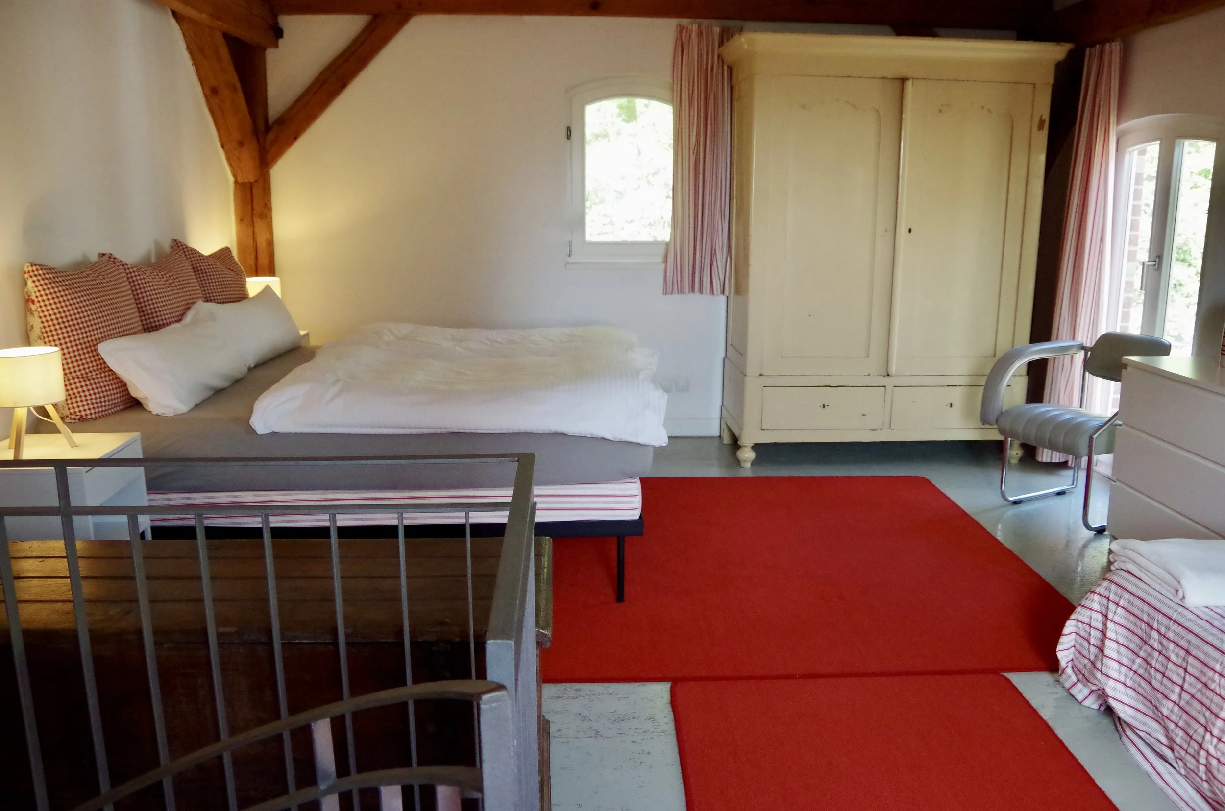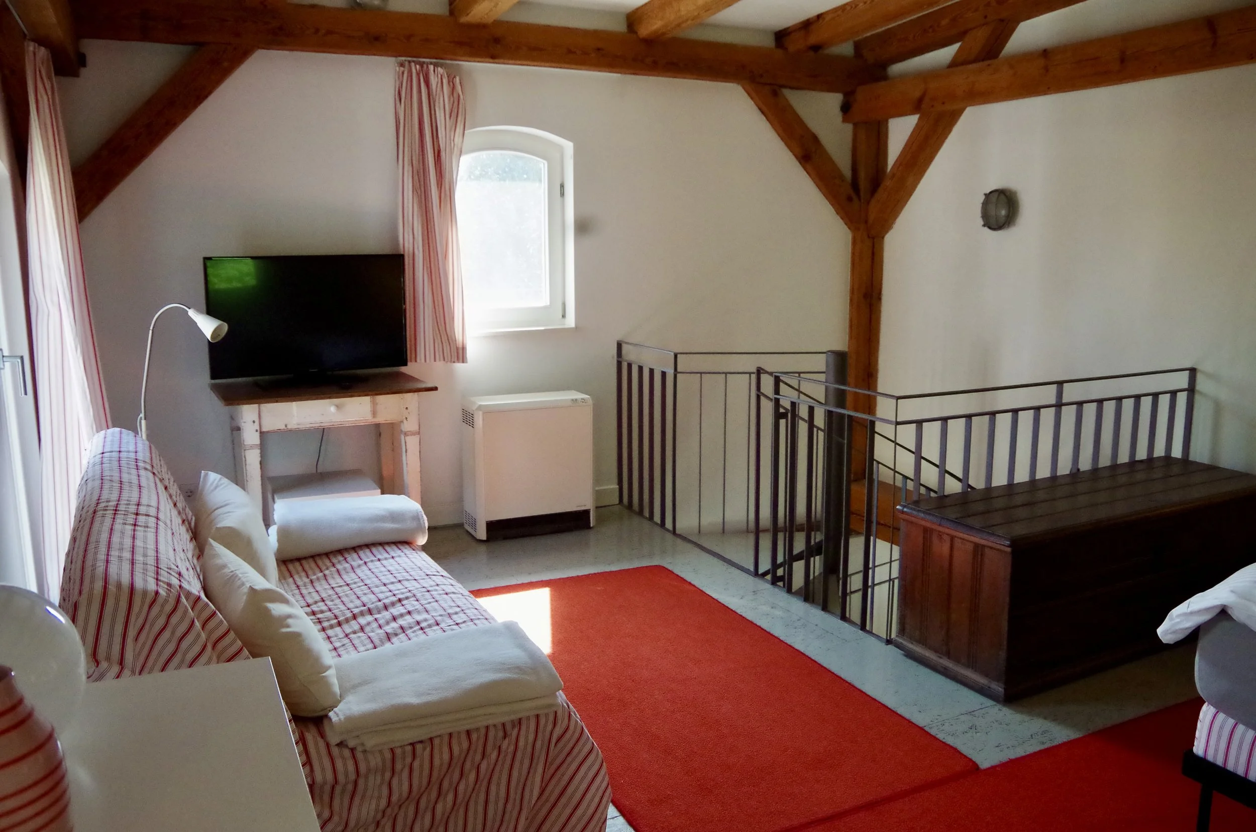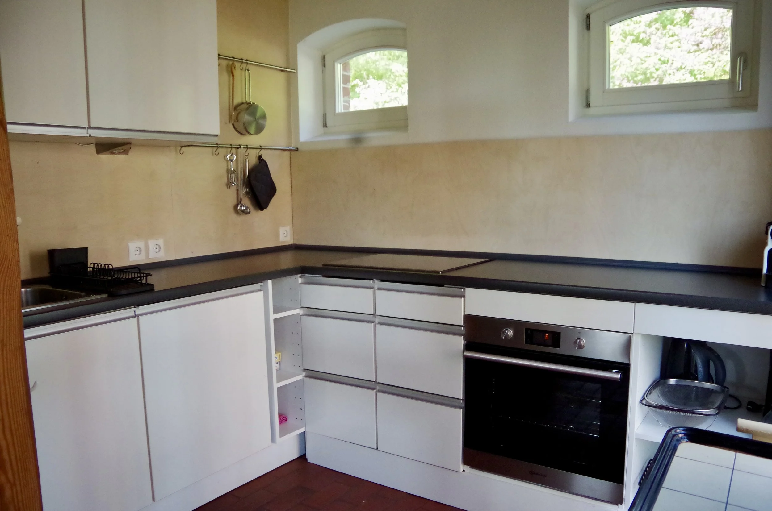 In der Wohnung befindet sich eine Wendeltreppe vom Erdgeschoss in die offene Schlafebene. Vorhanden sind Elektroherd, Backofen, Kühlschrank mit Gefrierfach, Kaffeemaschine, Nespresso-Maschine, Wasserkocher, Toaster. Bettbezüge und Handtücher stellen wir für Sie bereit. Waschmaschine und Trockner befinden sich im Haus.